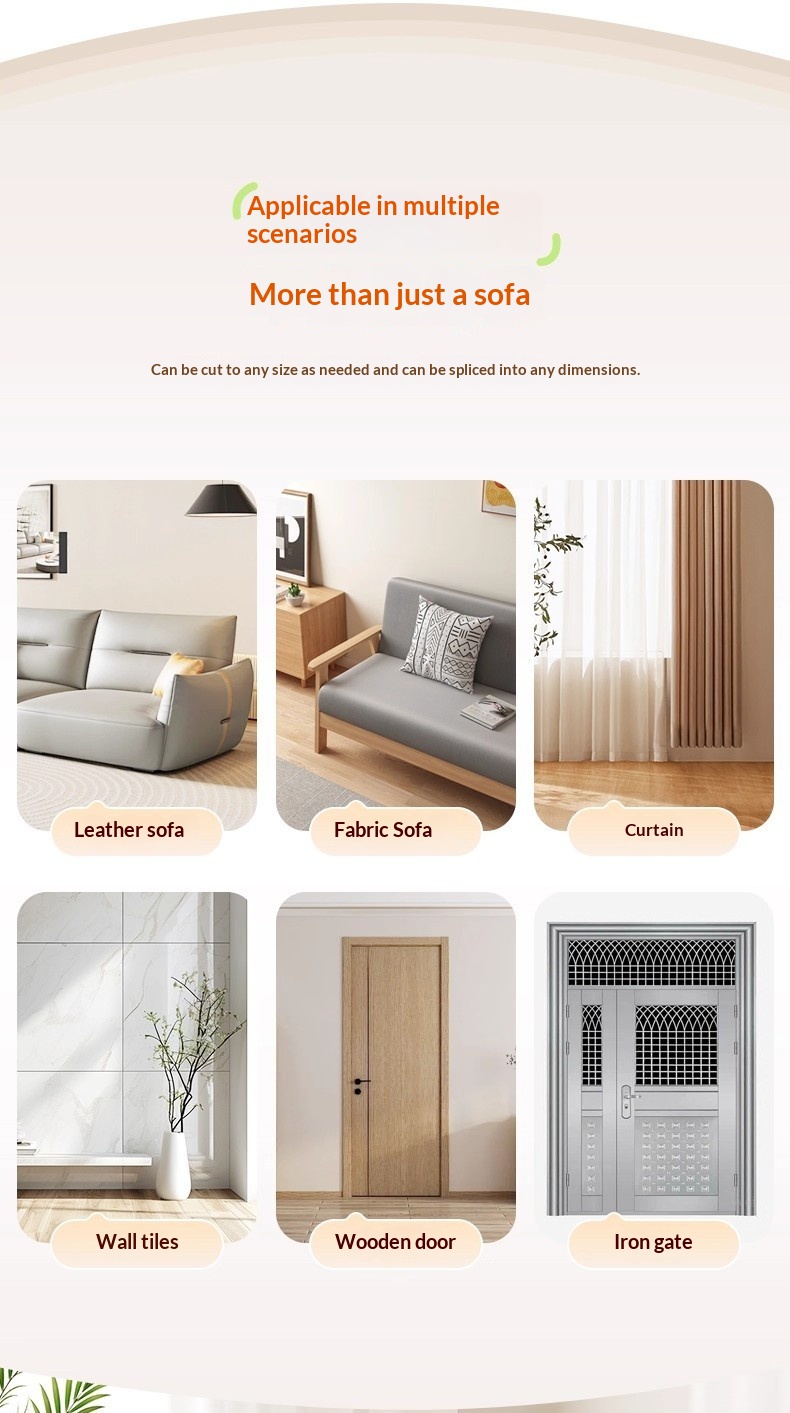 - Adhesivo de Grado Industrial: Se pega firmemente a sofás, puertas, paredes o madera sin dejar residuos al retirarlo.