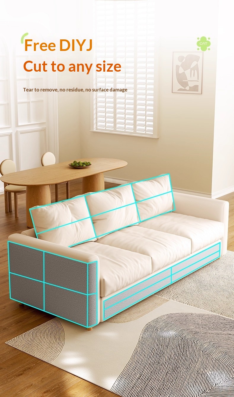A diferencia de los plásticos feos y brillantes, nuestra alfombra de Feltro Adhesivo de Alta Densidad (4mm) se camufla con la tela de tus muebles, ofreciendo una superficie que a tu gato le encantará rascar, pero que protege al 100% la tapicería que hay debajo.