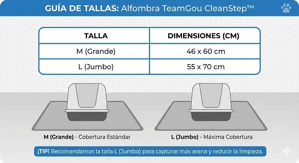 La alfombra CleanStep™ es tu barrera de defensa. A diferencia de las alfombras pequeñas de supermercado que no cubren nada, nuestra versión XXL asegura que tu gato tenga espacio para limpiarse las patas al salir.